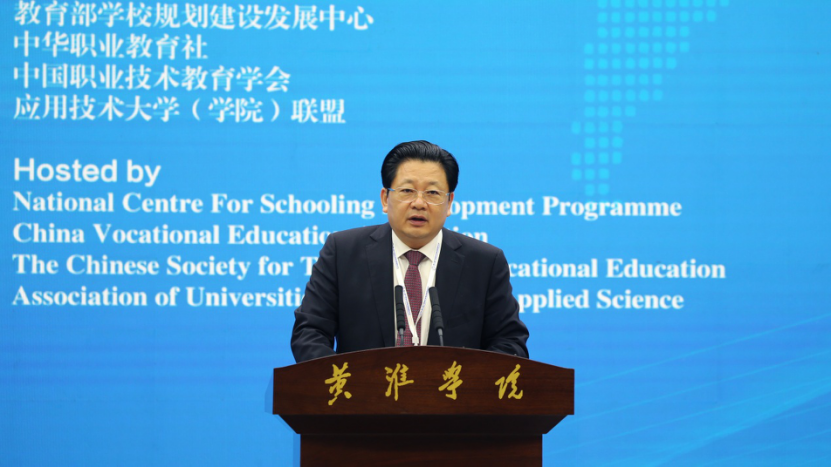 10月16日,第七届产教融合发展战略国际论坛(以下简称论坛)在河南省驻马店市盛大开幕。论坛由教育部学校规划建设发展中心联合中华职业教育社、中国职业技术教育学会、应用技术大学(学院)联盟举办,驻马店市人民政府、黄淮学院承办。全国人大常委会副委员长、民建中央主席、中华职业教育社理事会理事长郝明金,教育部党组成员、副部长孙尧,中国职业技术教育学会会长、教育部原副部长鲁昕, 河南省人民政府副省长霍金花,教育部学校规划建设发展中心主任陈锋,教育部发展规划司二级巡视员晁桂明,教育部职业教育与成人教育司副司长谢俐,中华职业教育社党组成员、副总干事李英爱、教育部学校规划建设发展中心副主任陈建荣等中方领导;以及剑桥大学副校长David Cardwell、爱尔兰卡罗理工学院副校长等外方嘉宾,线上线下出席开幕式。应用技术大学(学院)联盟理事长孟庆国主持开幕式。