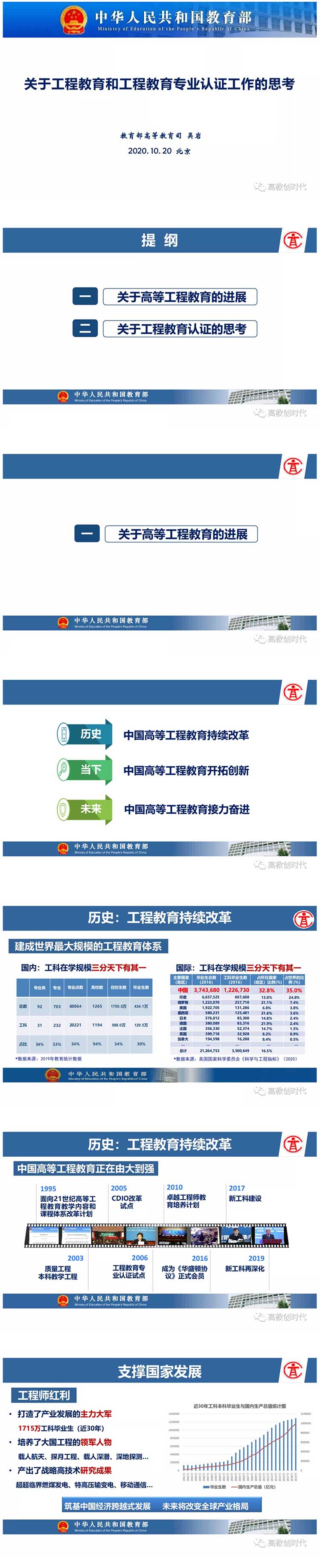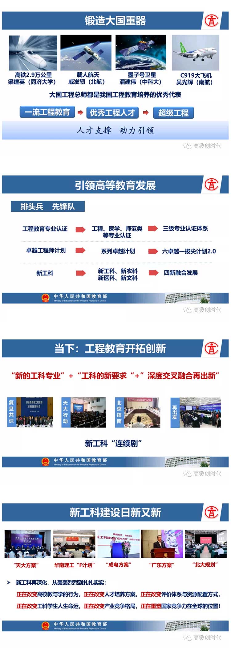 在对高等工程教育进展的回顾与展望中,吴岩就持续改革、开拓创新、接力奋进三方面,全维度分析了我国高等工程教育于不同历史时期在发展规模、国家战略、教育引领、社会服务、国际合作与交流方面发挥的重要历史作用。