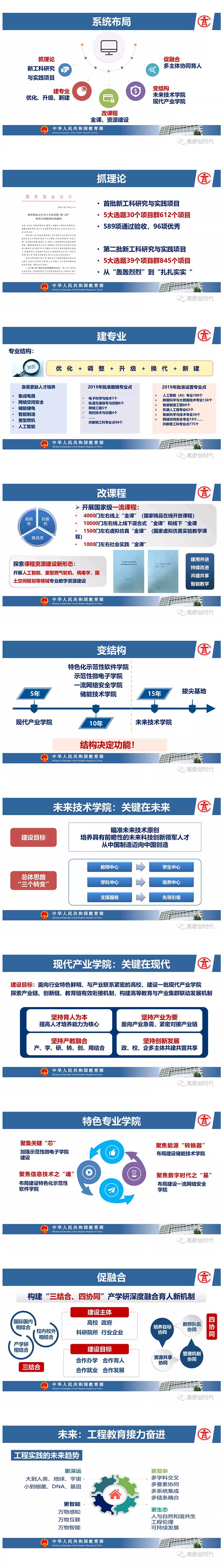 报告中,吴岩重点指出并分析在世界百年未有大变局中,“新工科建设”要针对抓理论、建专业、改课程、变结构、促融合5个方面的系统布局,进一步与世界高等工程教育同频共振。并在全球高等工程教育变革中进一步深刻认知以新理念、新模式、新体系、新结构、新标准、新人才为中心的新工科建设范式变革以及围绕构建未来技术学院、现代产业学院及特色专业学院探索的组织模式变革的重要时代意义。尤其在如何演好“新工科建设连续剧”的思考中,吴岩再次深入定义“新工科”:新的工科专业+工科的新要求+深度交叉融合再出新。