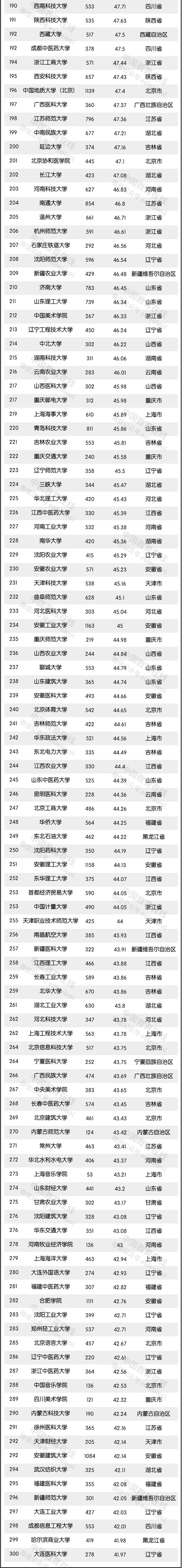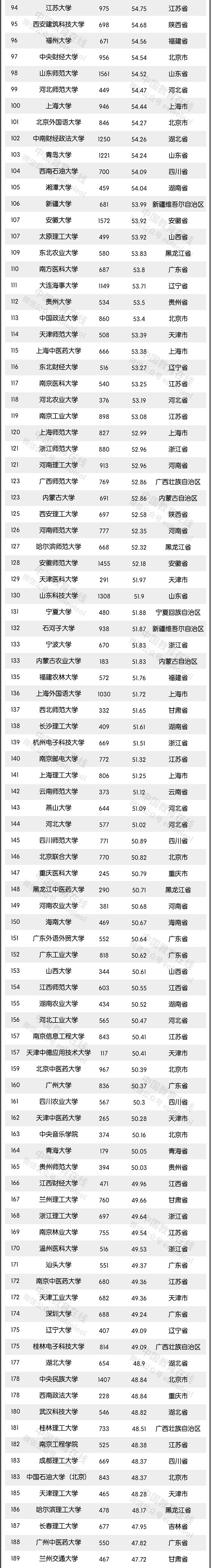 在前100高校中,“双一流”建设高校(含一流大学建设高校和一流学科建设高校)86所,占所有“双一流”建设高校数的62.77%,在前300高校中,“双一流”建设高校131所,占所有“双一流”建设高校数的95.62%。