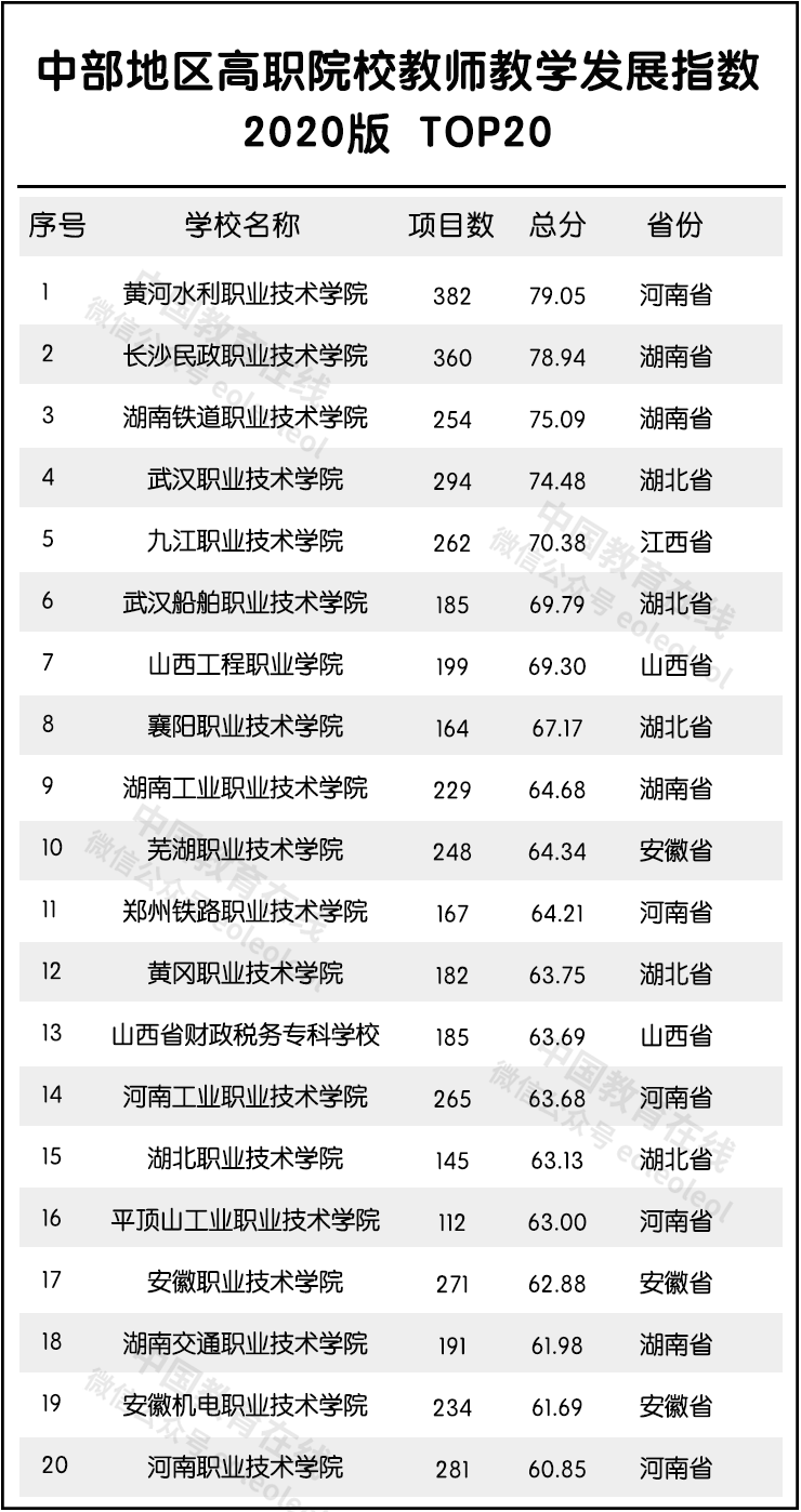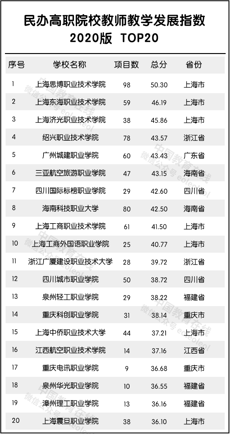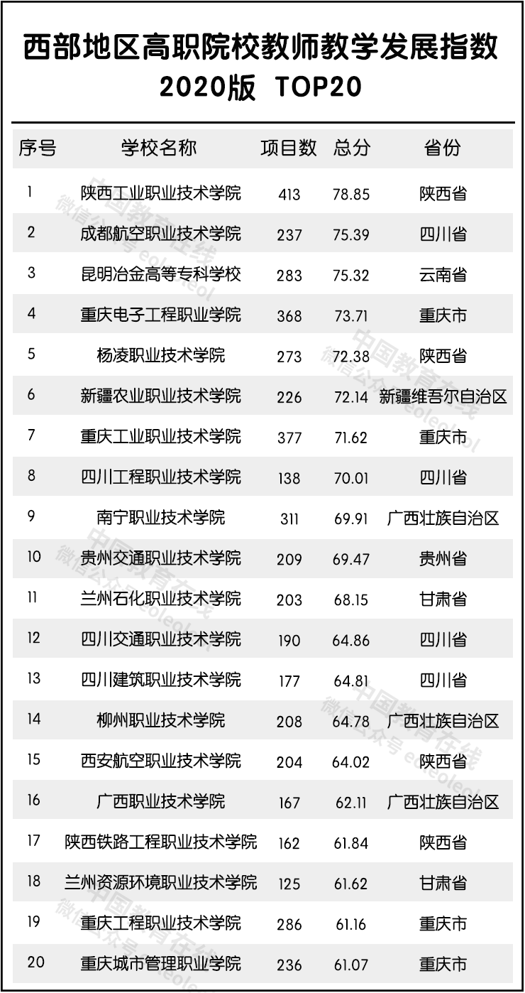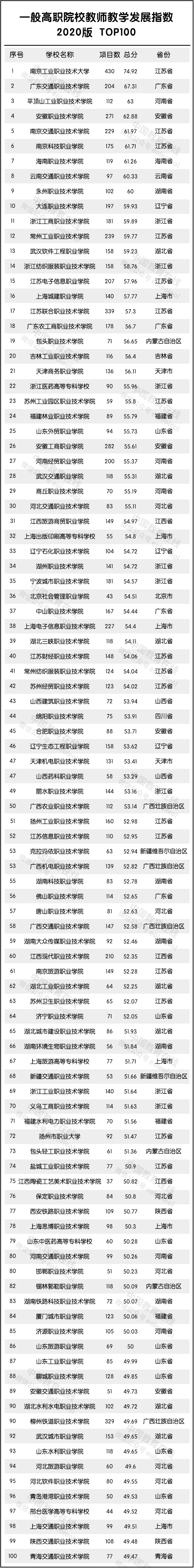 高职院校教师教学发展指数中,上榜高职院校达到1344所,占全国高职院校总数90.20%,比预发布时提高5.36个百分点,排名前三的为深圳职业技术学院、天津市职业大学和金华职业技术学院。